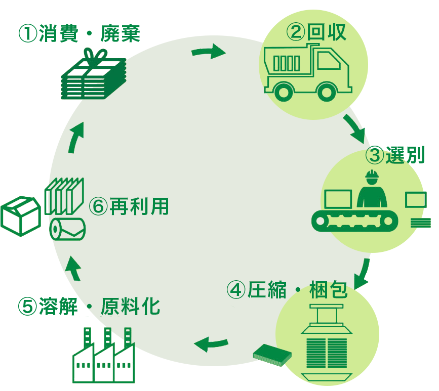 古紙リサイクルの流れ